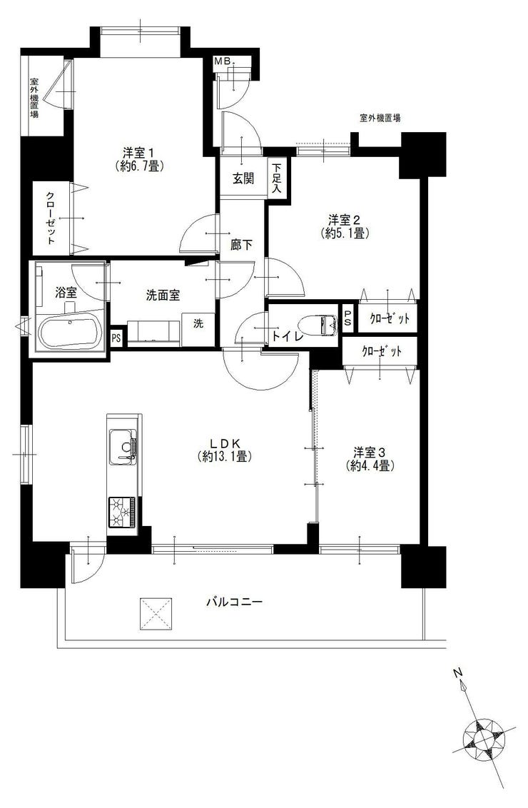 | 主要採光 | 南向 | バルコニー | 南向13.41㎡ |